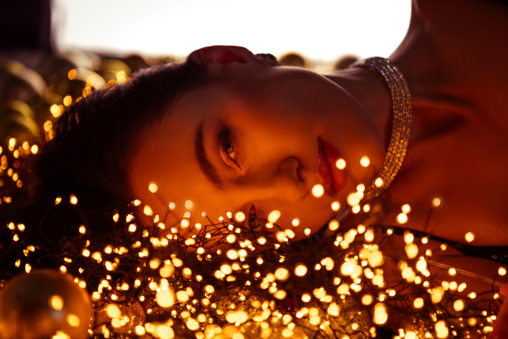 Les guirlandes lumineuses ne sont pas seulement destinées à votre sapin ! Elles peuvent créer une ambiance douce et chaleureuse dans la chambre. Enveloppez doucement une guirlande (de préférence à LED et à basse température) autour de votre corps pour une mise en scène éblouissante. Non seulement cela mettra en valeur vos courbes, mais cela ajoute un éclat féerique à votre présence.